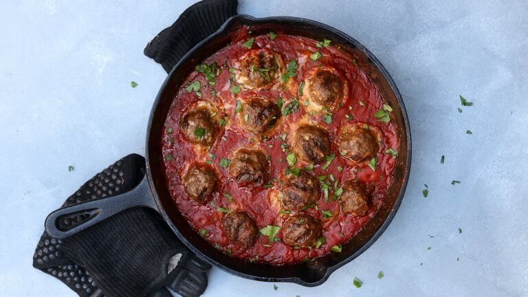 • Laat de albondigas op het indirecte deel van de barbecue nog 10 minuten pruttelen en haal de skillet vervolgens van de barbecue. Hak nog wat verse peterselie fijn en bestrooi de albondigas hier mee.