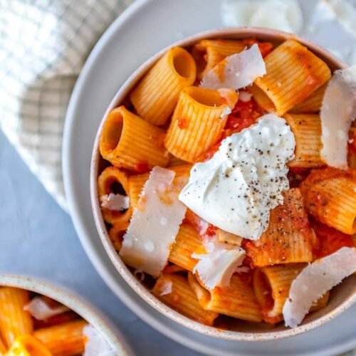 - 500 gram korte pasta (bv. rigatoni of penne)