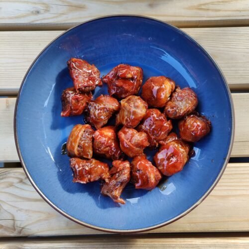 Kipdijfilet omwikkeld met spek en een pittig-zoete glaze