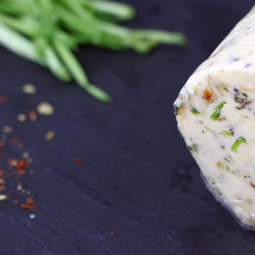 • Na een uur heb je een stevige rol kruidenboter, waar je de benodigde porties af kunt snijden.