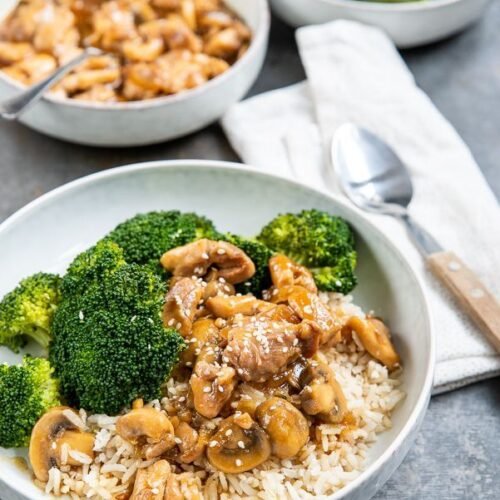 - Roer hierna de broccoli door de saus met de kip. Serveer de kip teriyaki met de gekookte rijst. Garneer eventueel met sesamzaadjes.