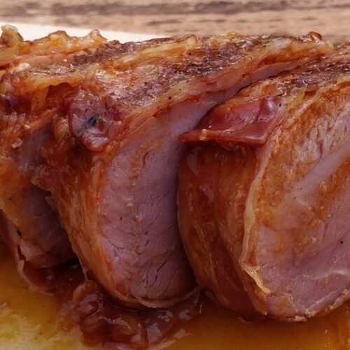 - Snij de varkenshaas in plakken van ongeveer 1,5 cm dik en serveer met wat bijgerechten. Eet smakelijk!